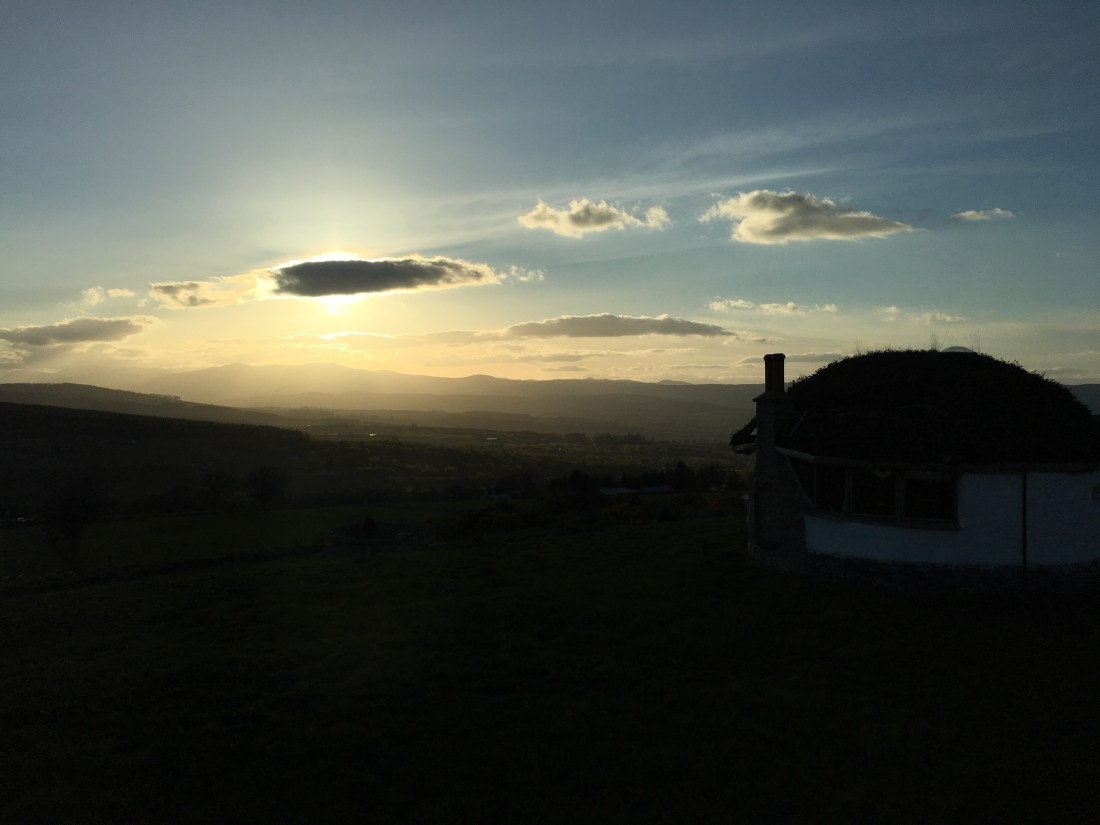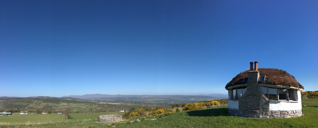 So. I am at a writers retreat. Away from the distractions of normal life, to buy some time and space. I’m sitting at a simple wooden desk, in a little cottage on a high hilltop, looking across miles of forested glens to distant northern mountains, still tippped here and there with snow. The world is turning green. The air is filled with bird song and the honey smell of gorse.